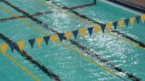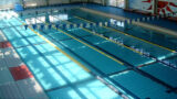 屋内プールがない中学・高校の水泳部が公共プールで部活動を行っており、抽選の結果…申し訳ないことに十分に満足できるコース確保ができておりません。そのため、全員参加ではありますが、窮屈なレイアウトでの練習です。