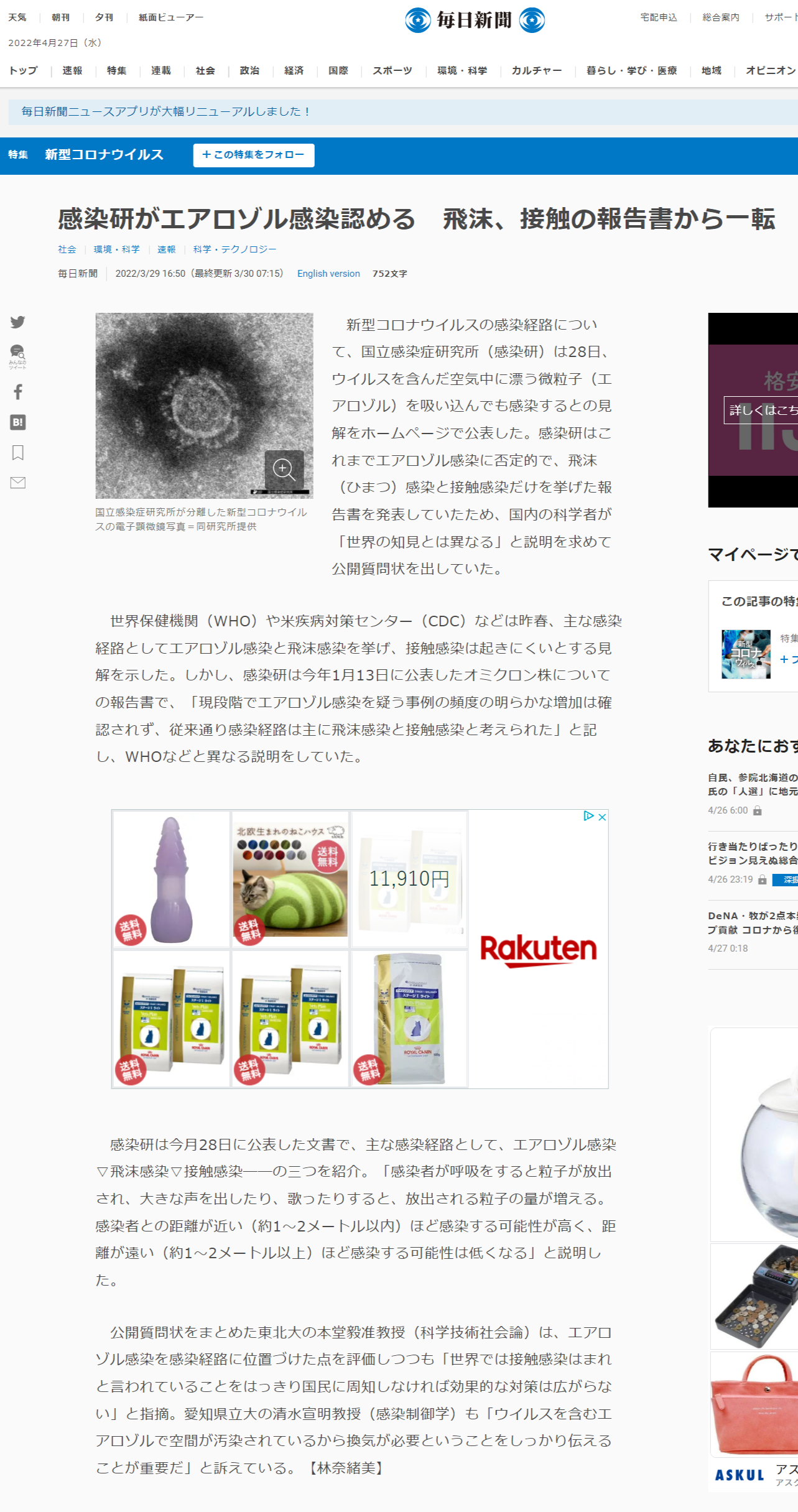 FireShot Capture 024 – 感染研がエアロゾル感染認める 飛沫、接触の報告書から一転 – 毎日新聞 – mainichi.jp